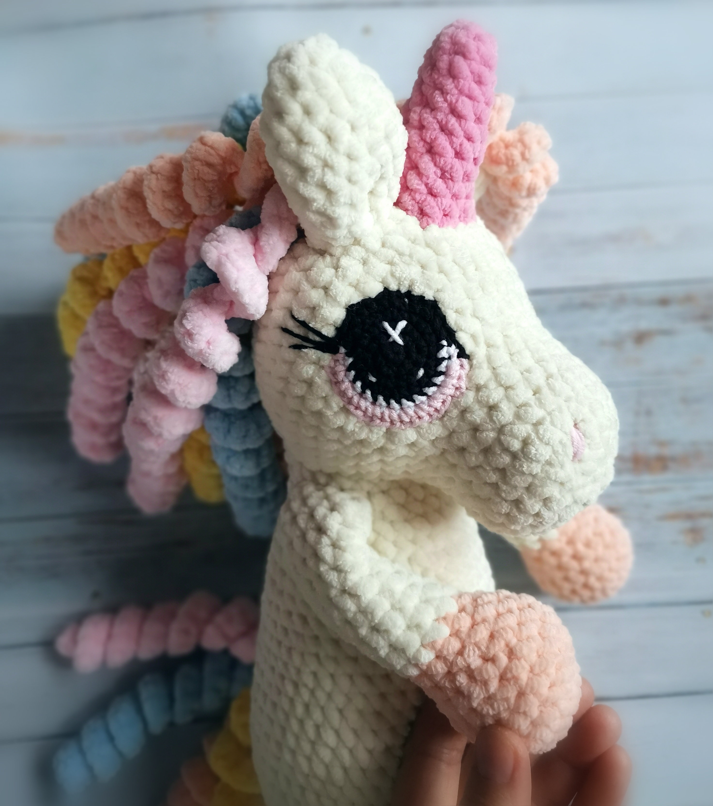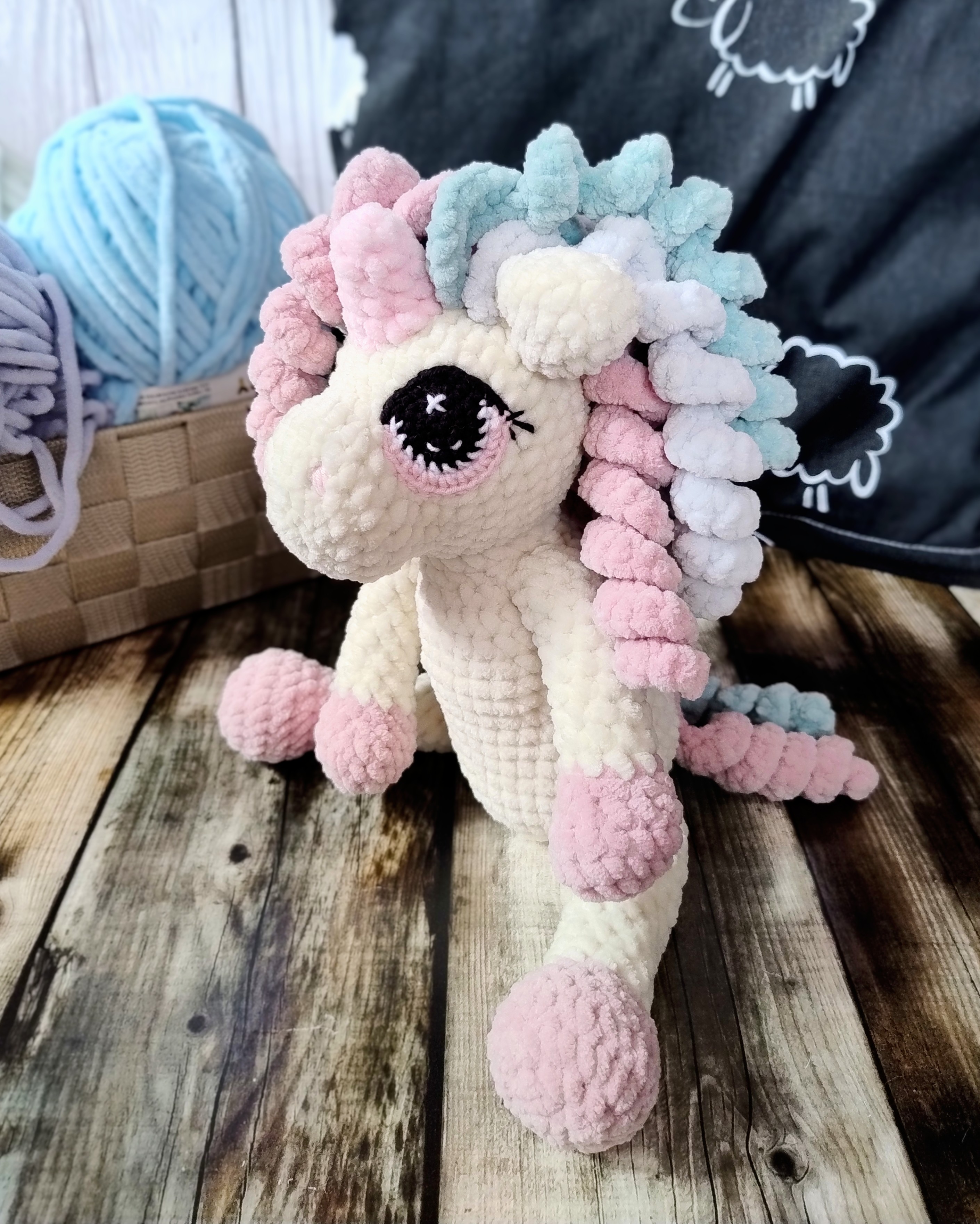 Jednorożec Luna – wysokość ok. 40cm, włóczka pluszowa. Cena 210 zł