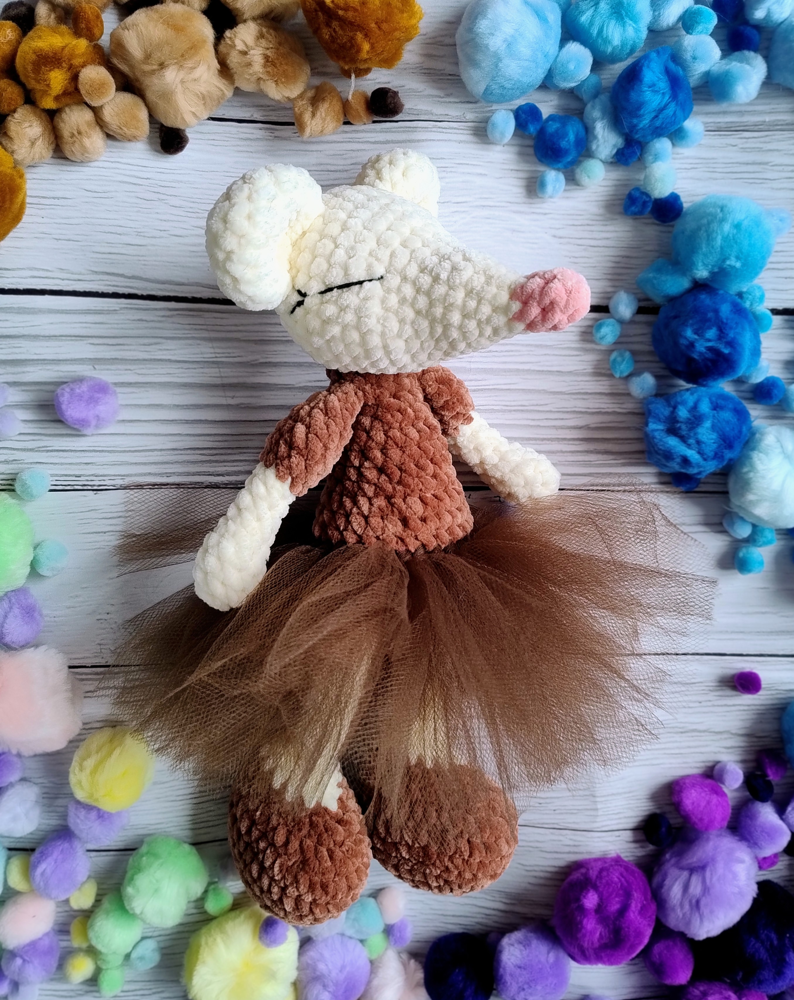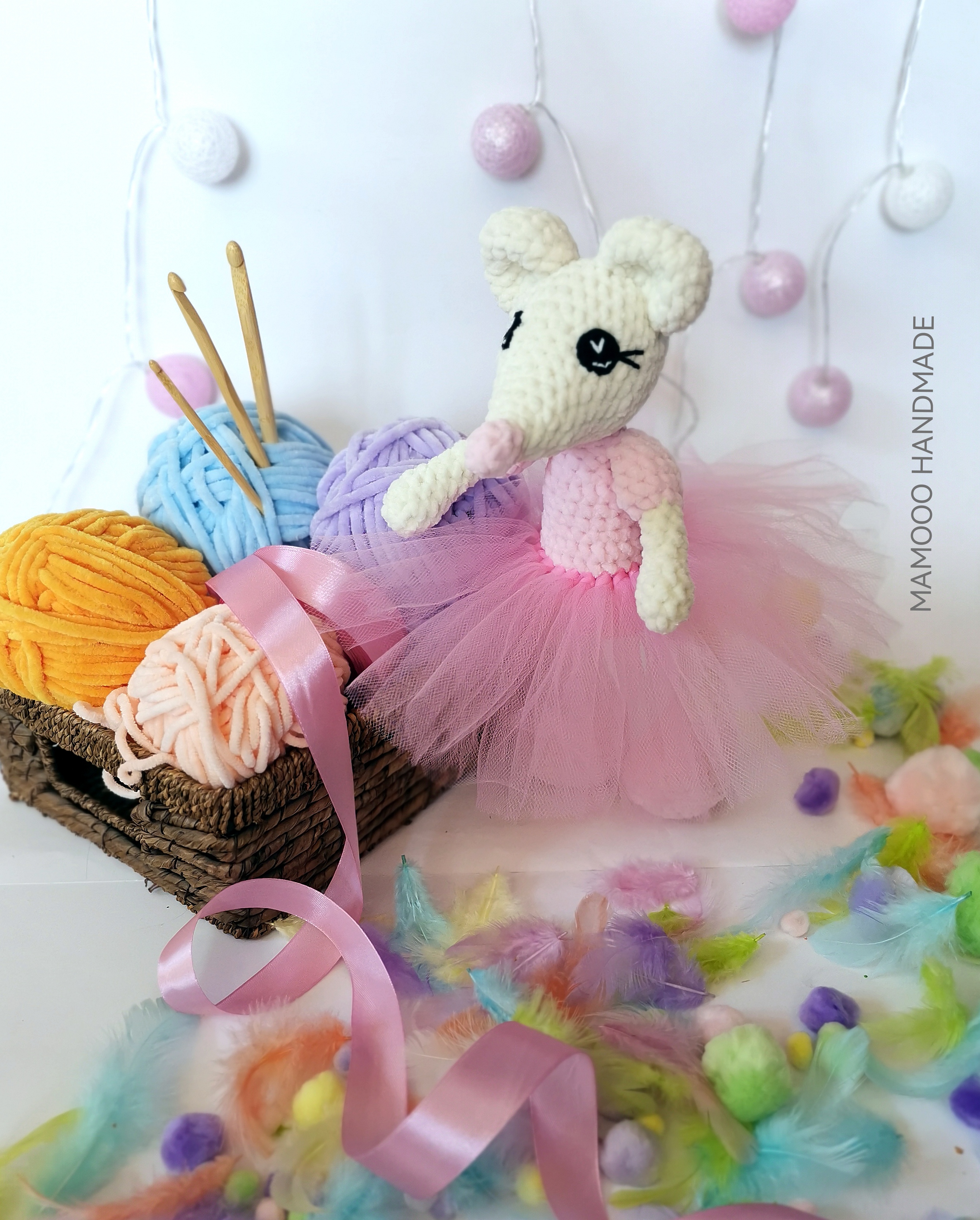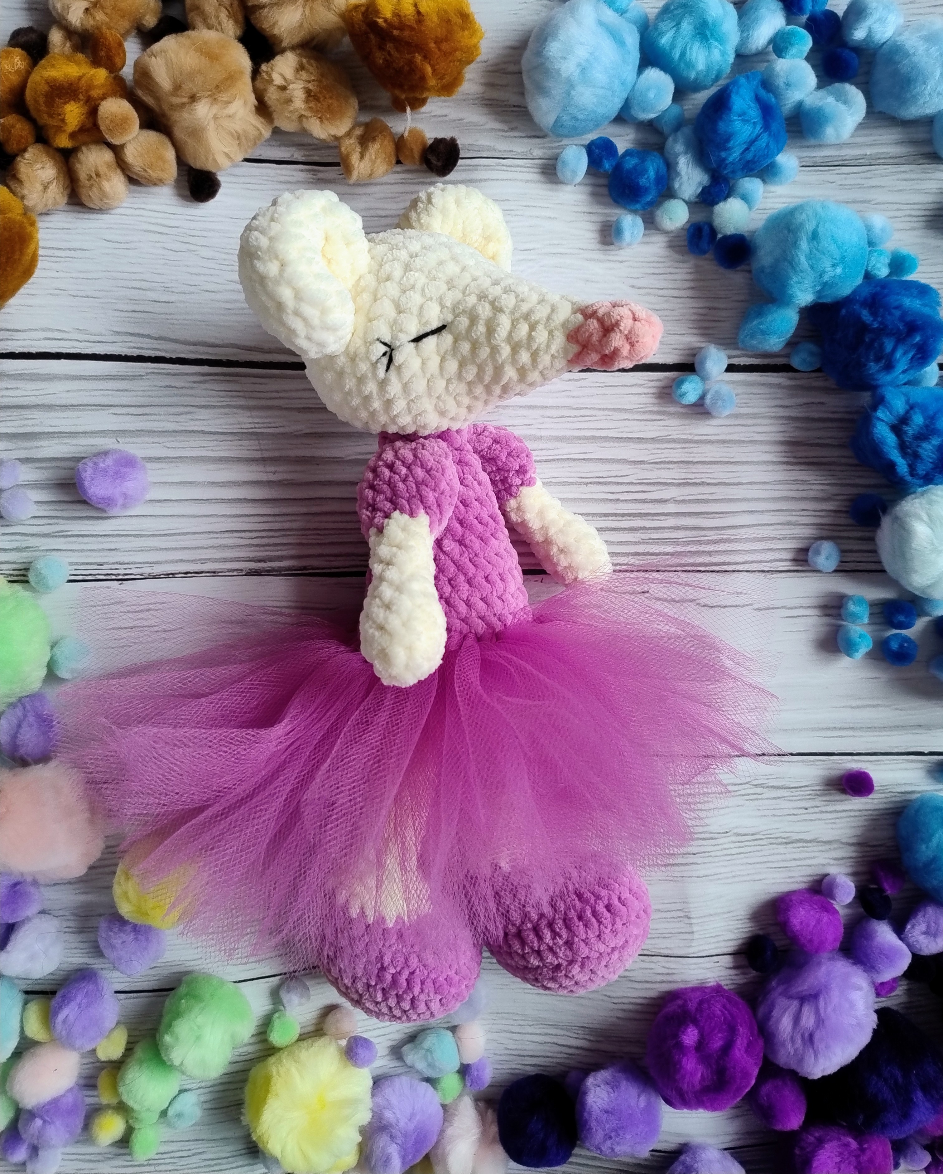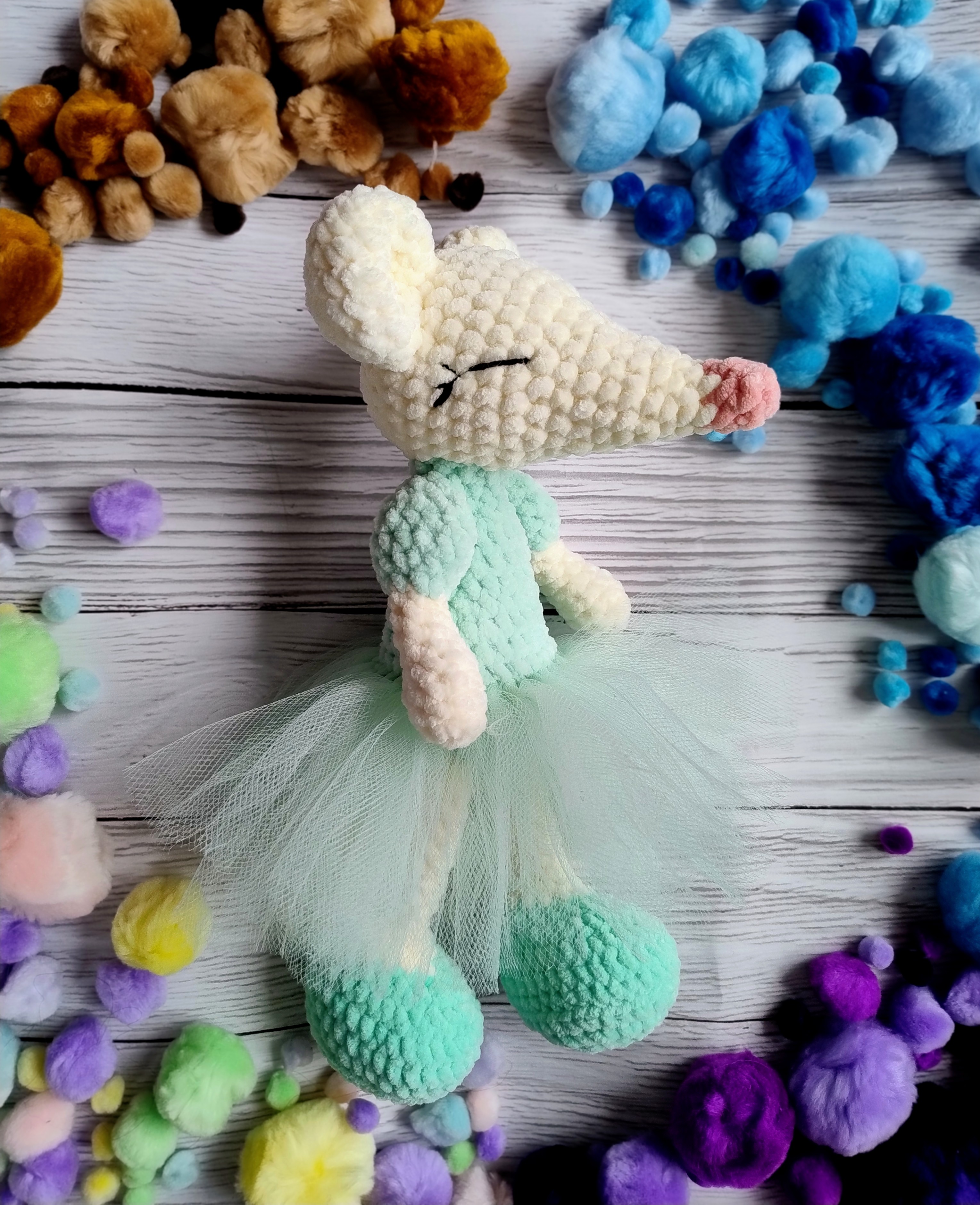 Myszka baletnica Mia – wysokość ok.28cm, włóczka pluszowa.Cena 150zł