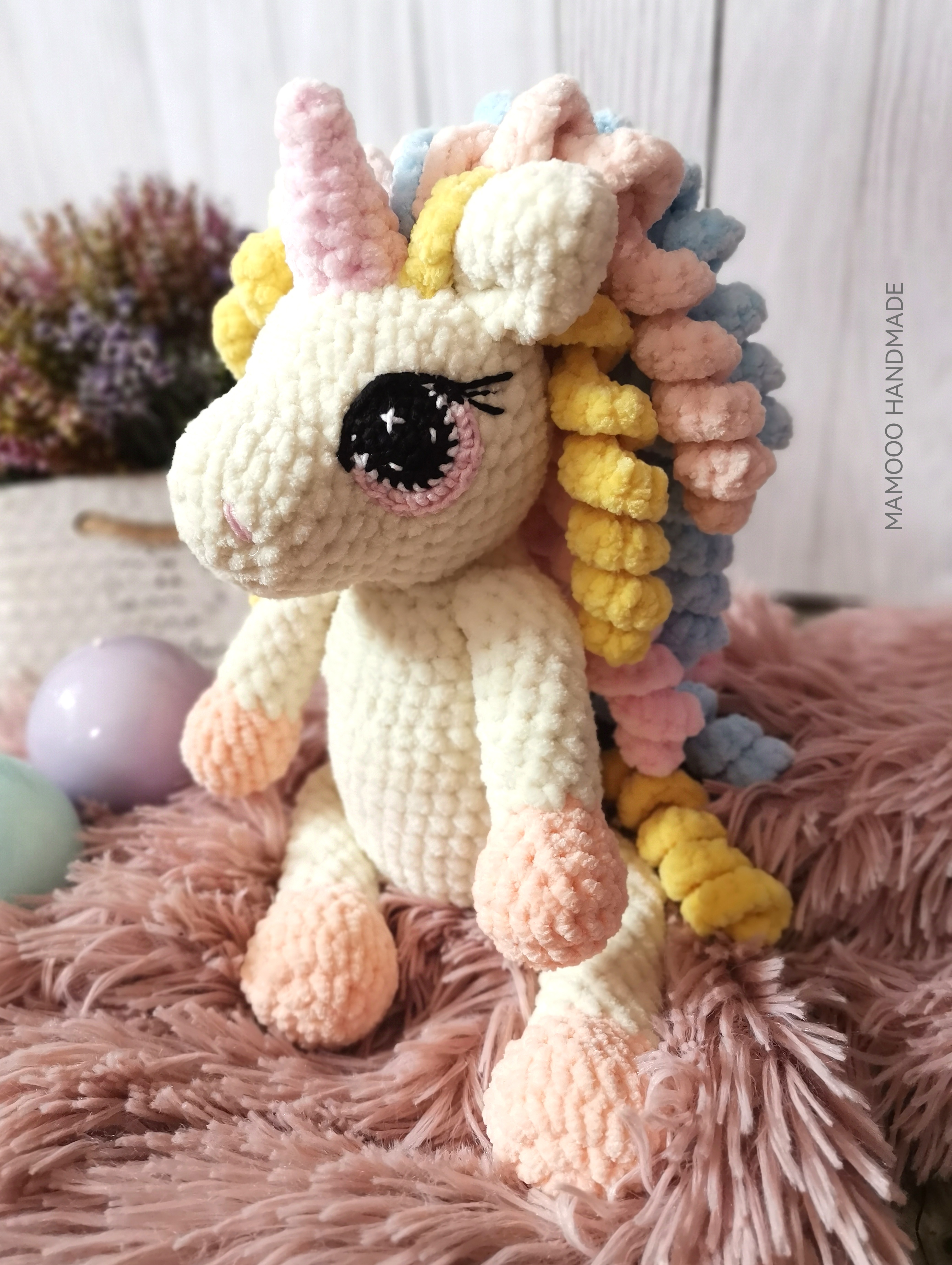 Jednorożec Luna – wysokość 30cm, włóczka pluszowa. Cena 160zł