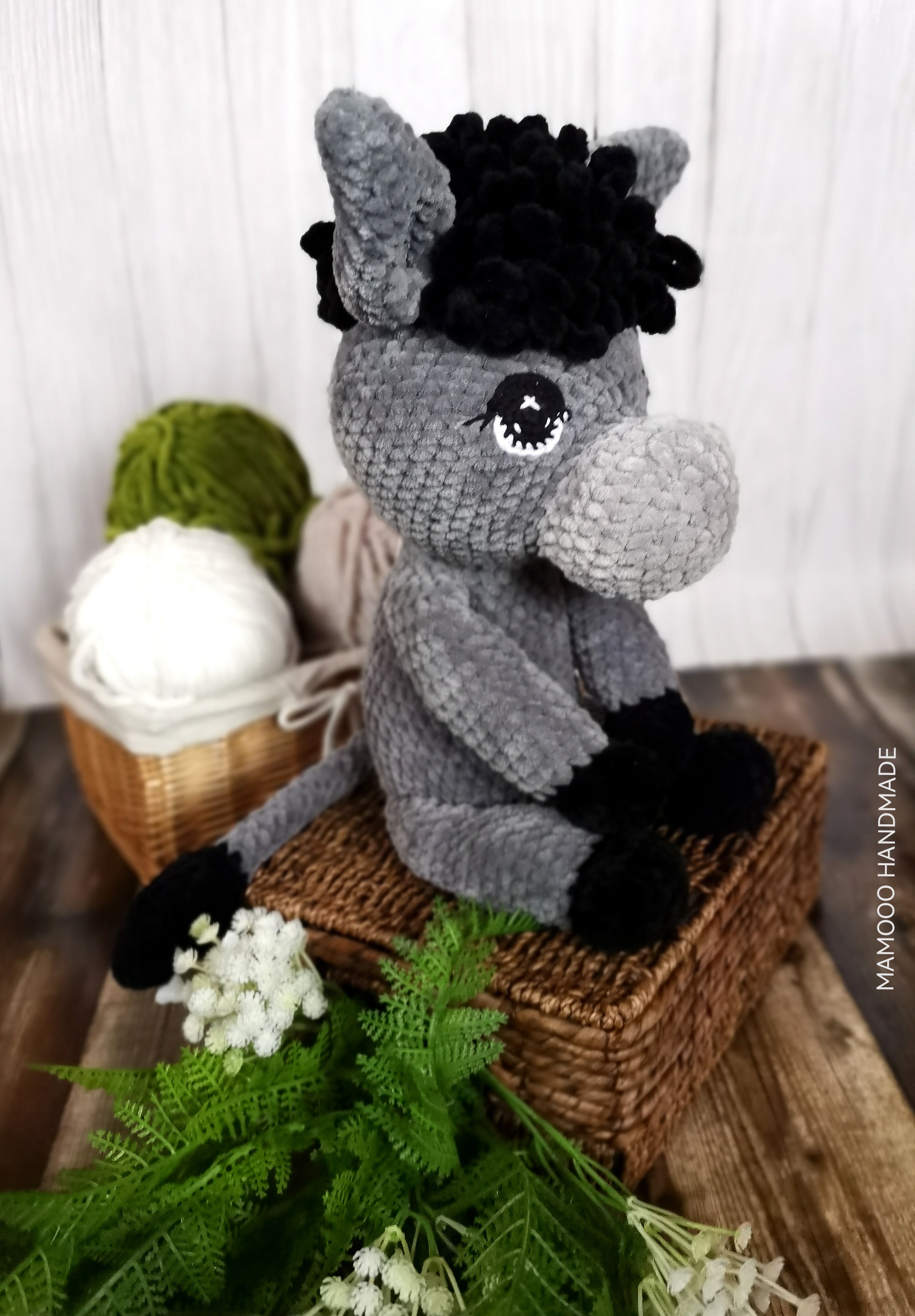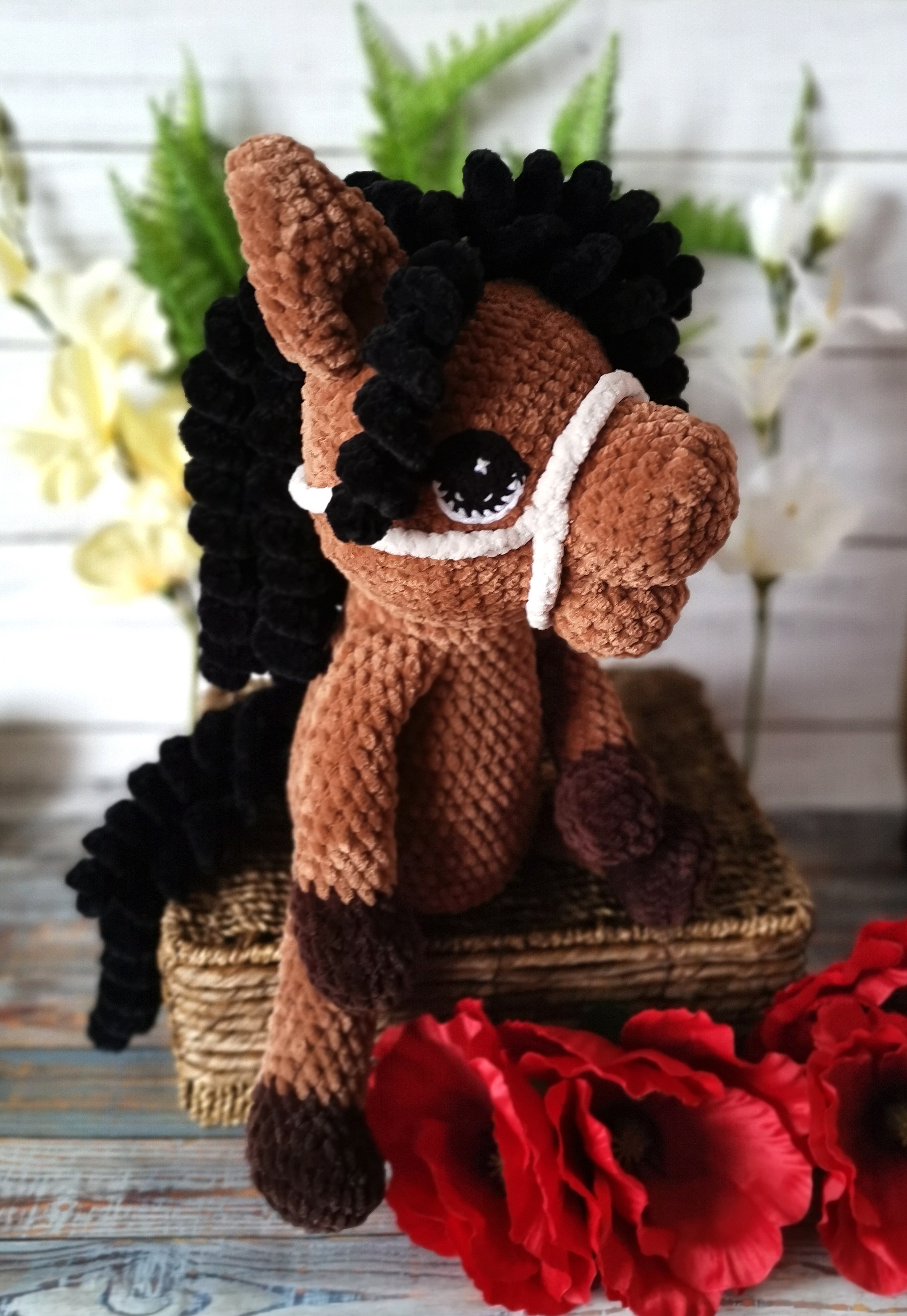 KONIK MUSTANG – wys. z nóżkami ok. 37cm, włóczka pluszowa, różne kolory. Cena 210zł