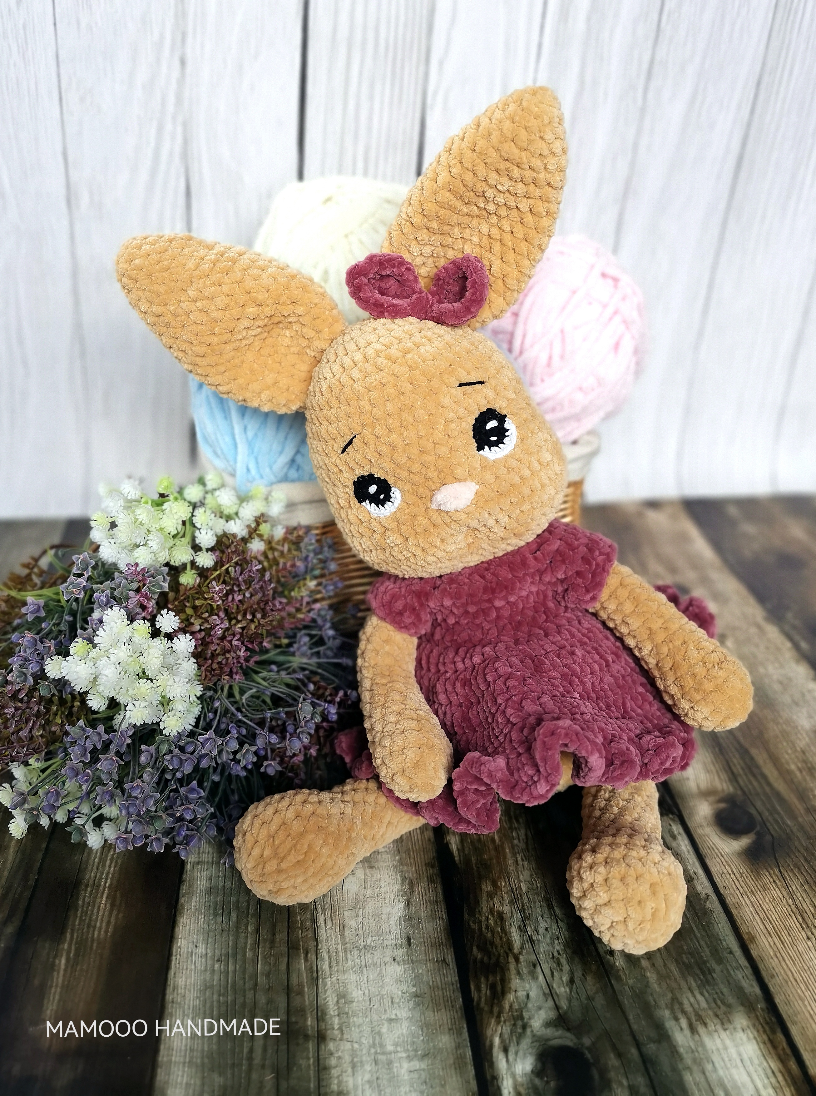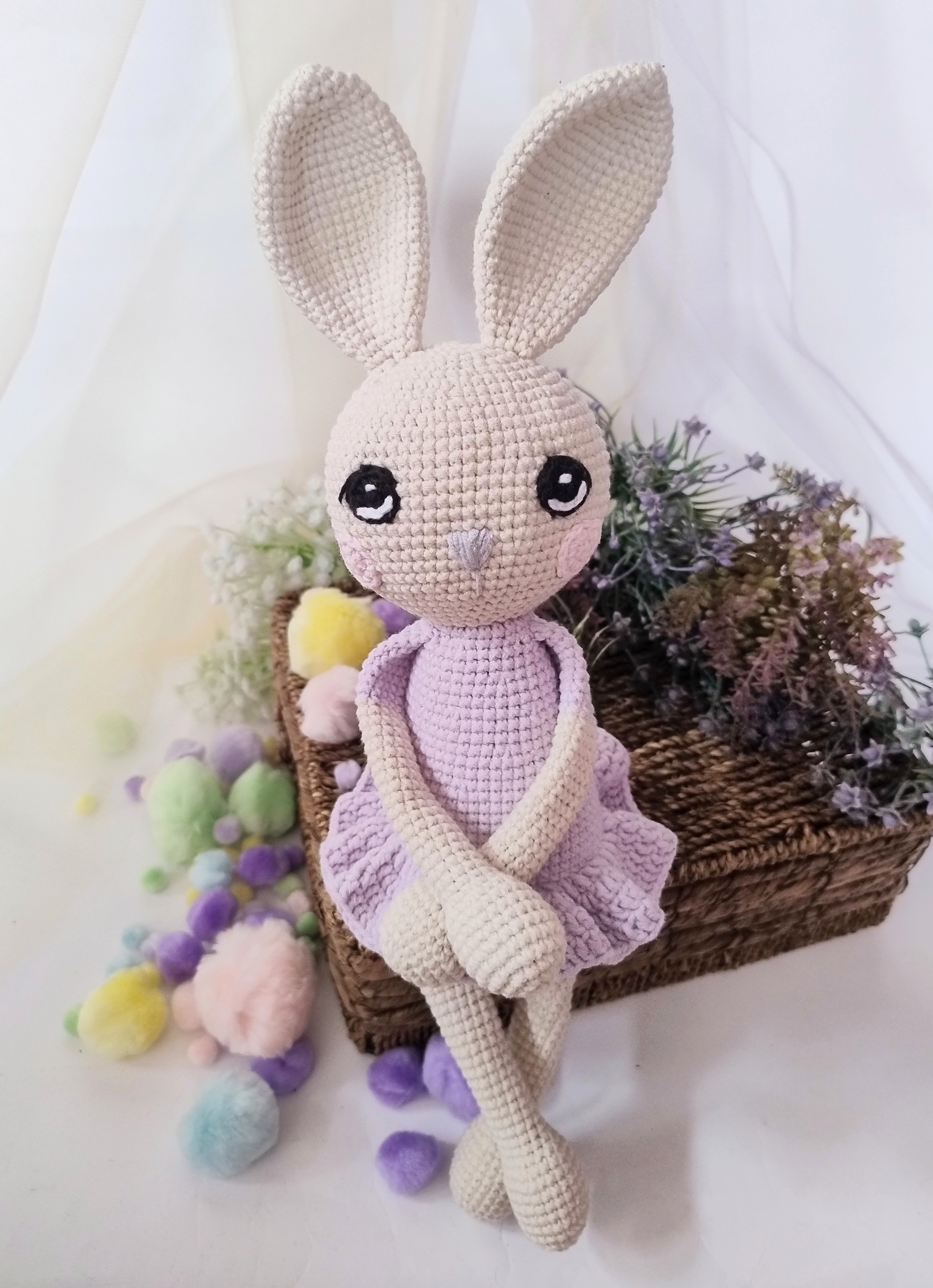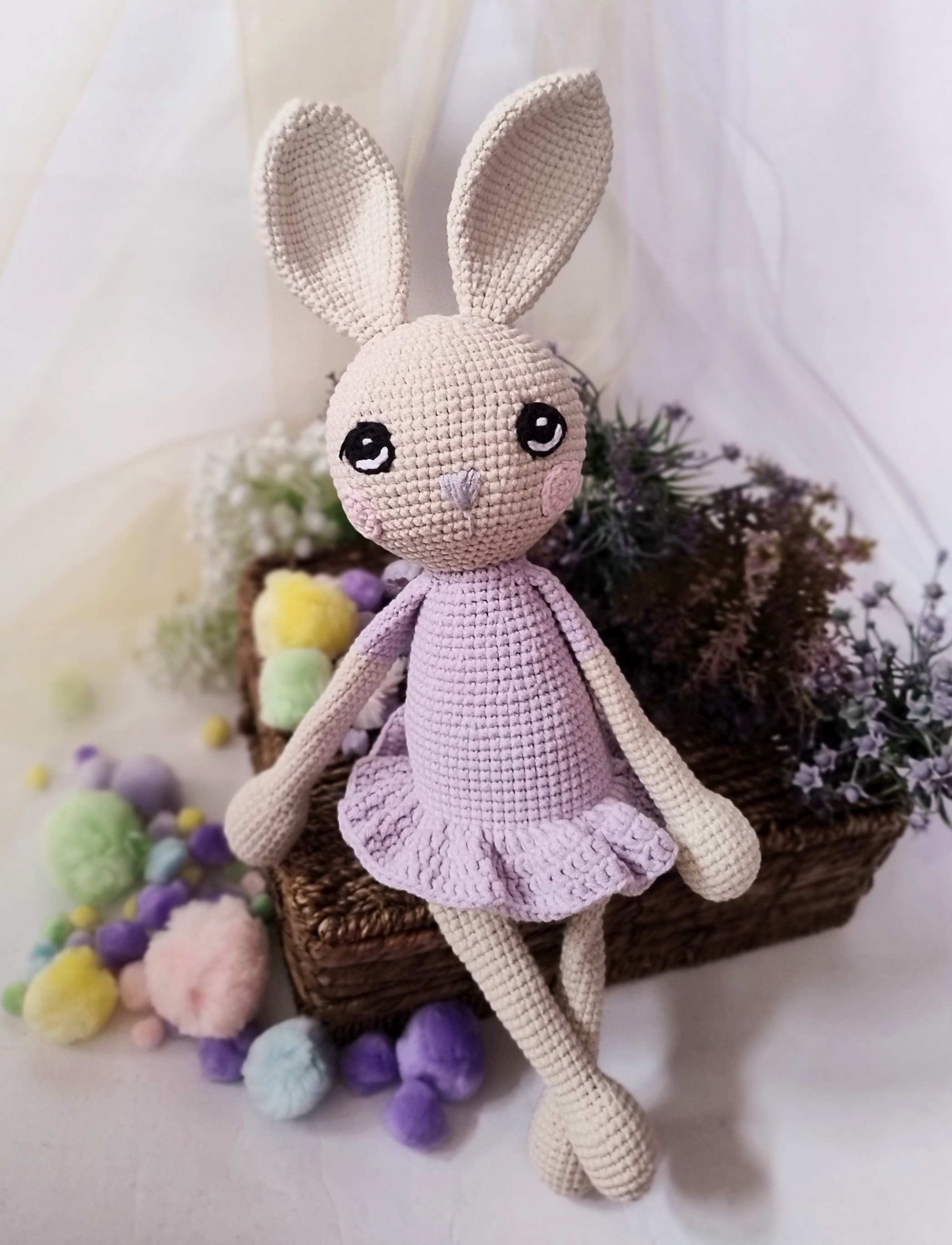 Królisia Ola – wysokość z uszami 40cm, włóczka pluszowa. Dowolna kolorystyka. Cena 199zł