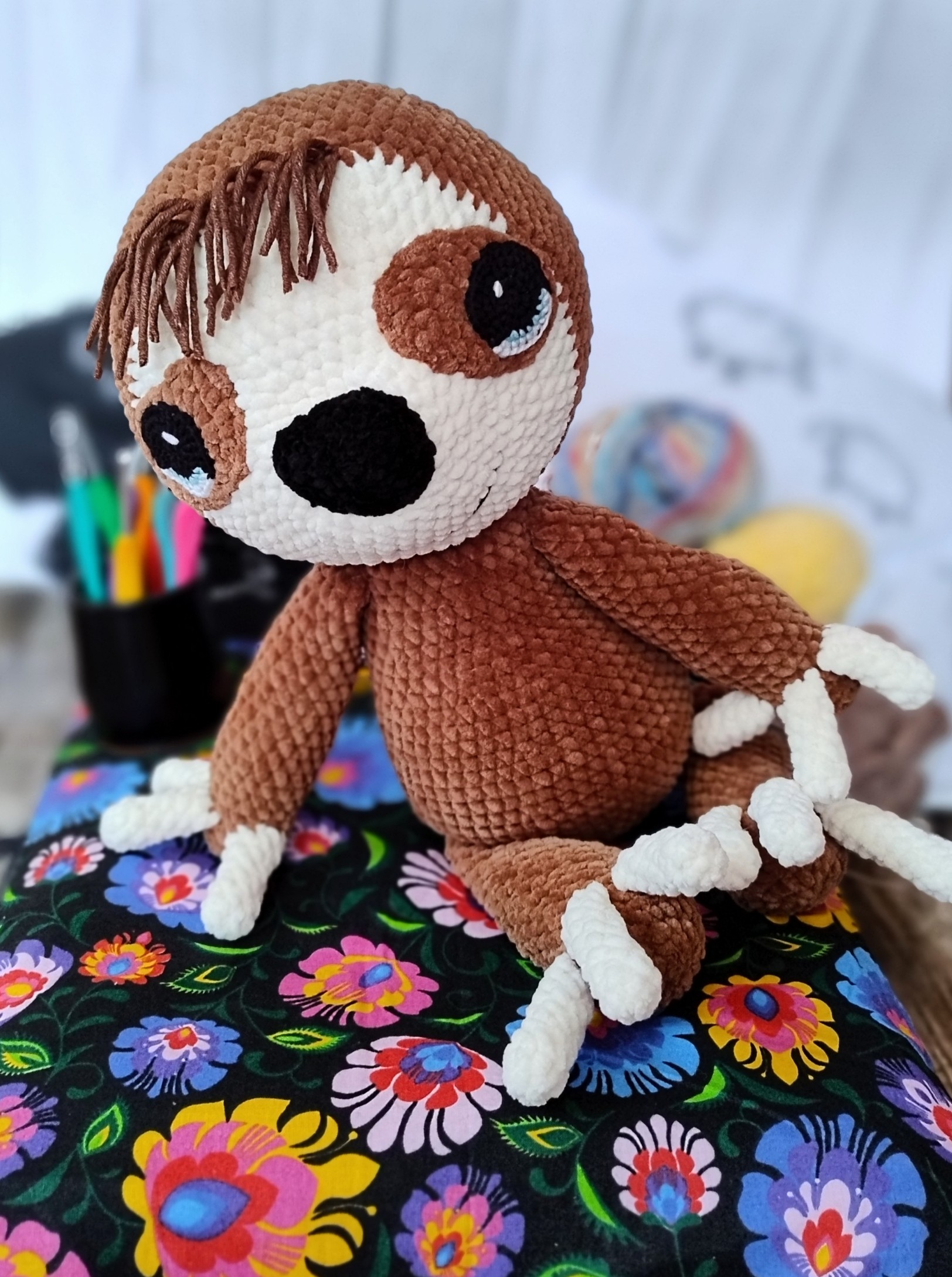 LENIWIEC TYMON – włóczka pluszowa, wysokość ok. 43cm. Cena 240zł