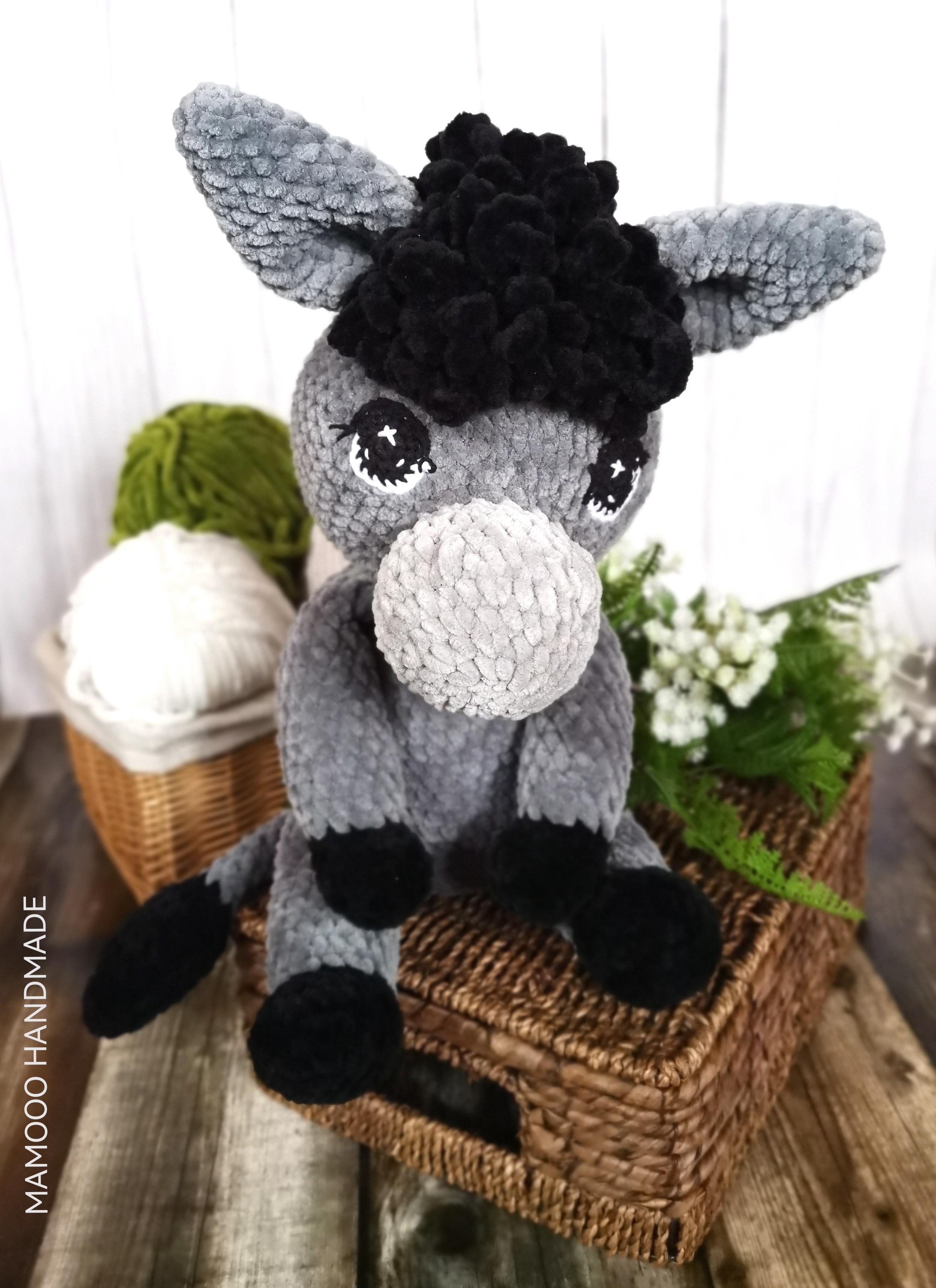 OSIOŁEK JÓZIO – włóczka pluszowa, wys. ok. 40cm. Pracochłonna, efektowna grzywa. Cena 210zł