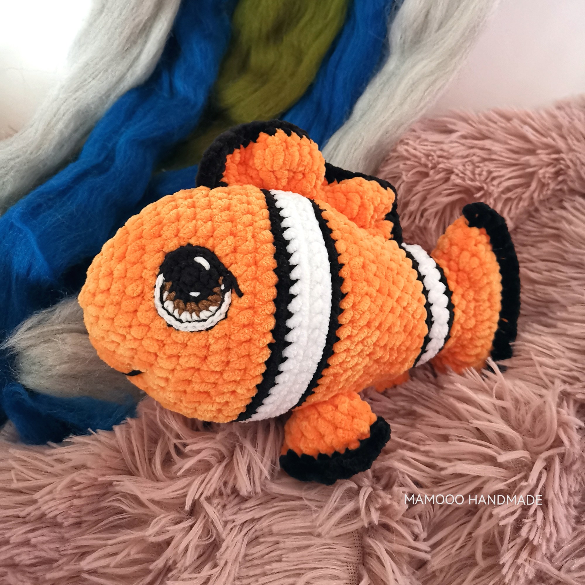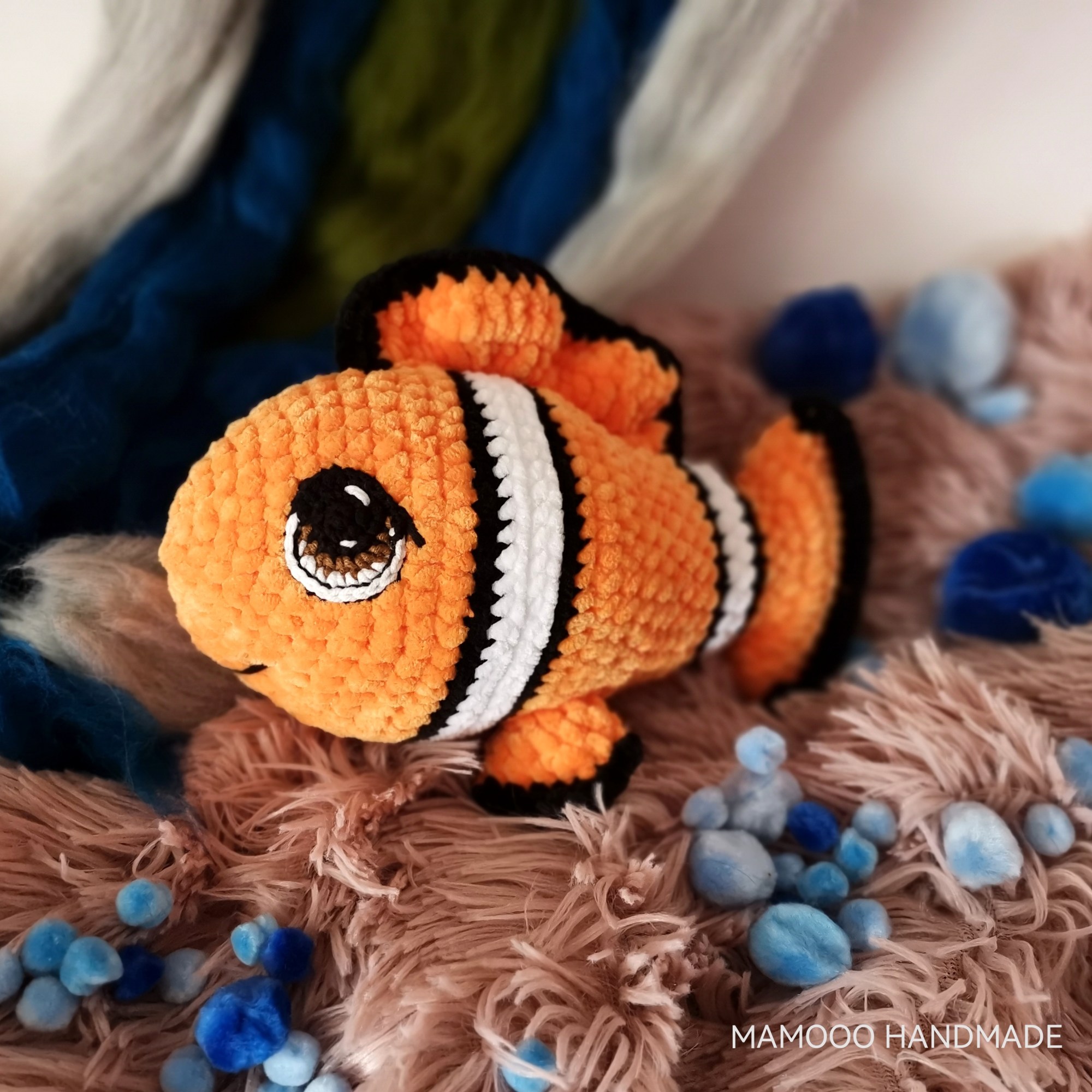 Rybka błazenek – długość ok. 21cm, włóczka pluszowa. Cena 120zł