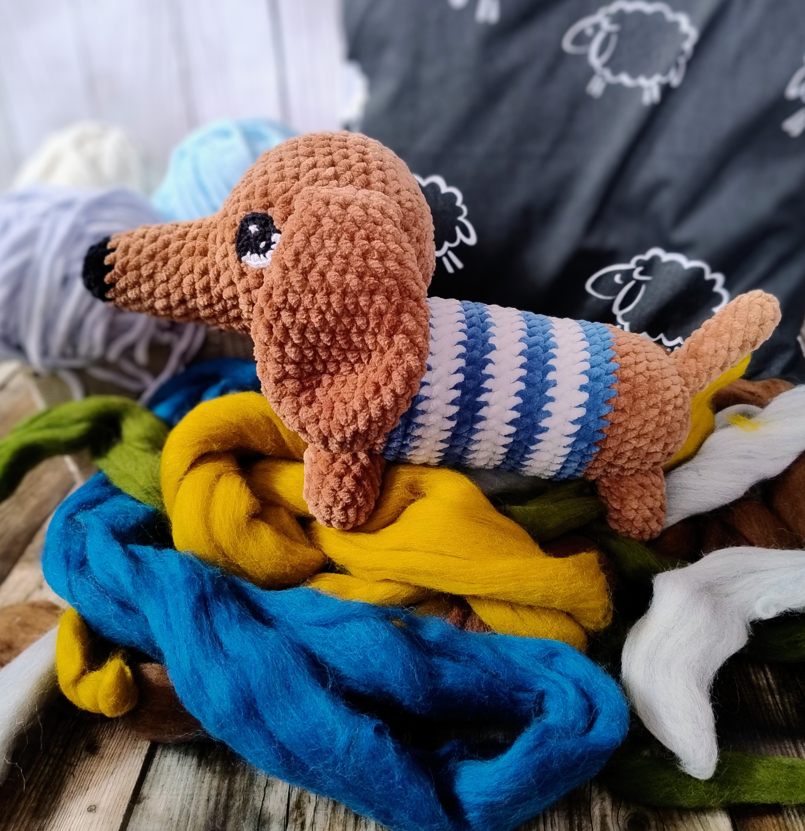 JAMNIK – włóczka pluszowa, długość od nosa do ogona 30cm. Różne kolory. Cena 150zł
