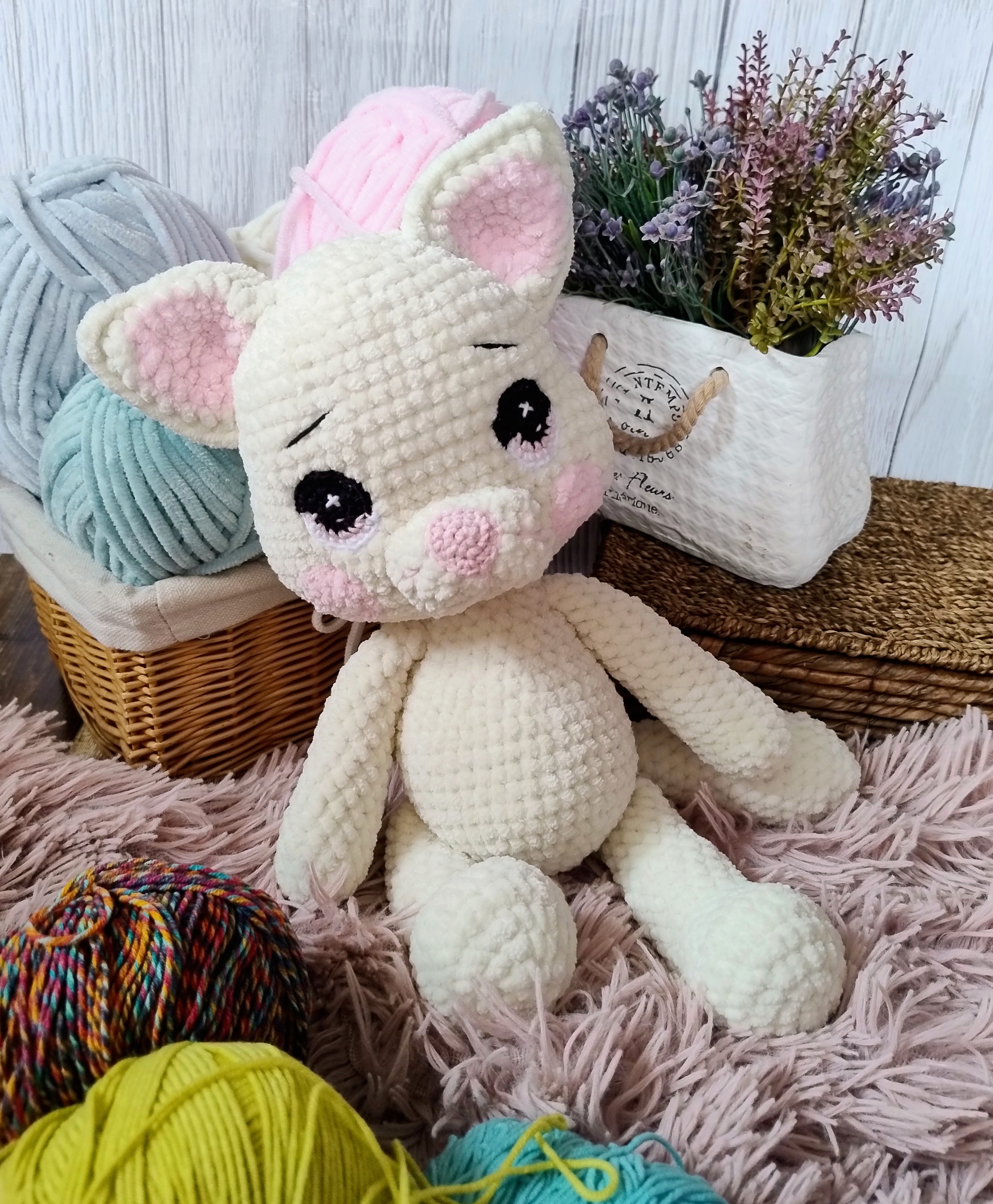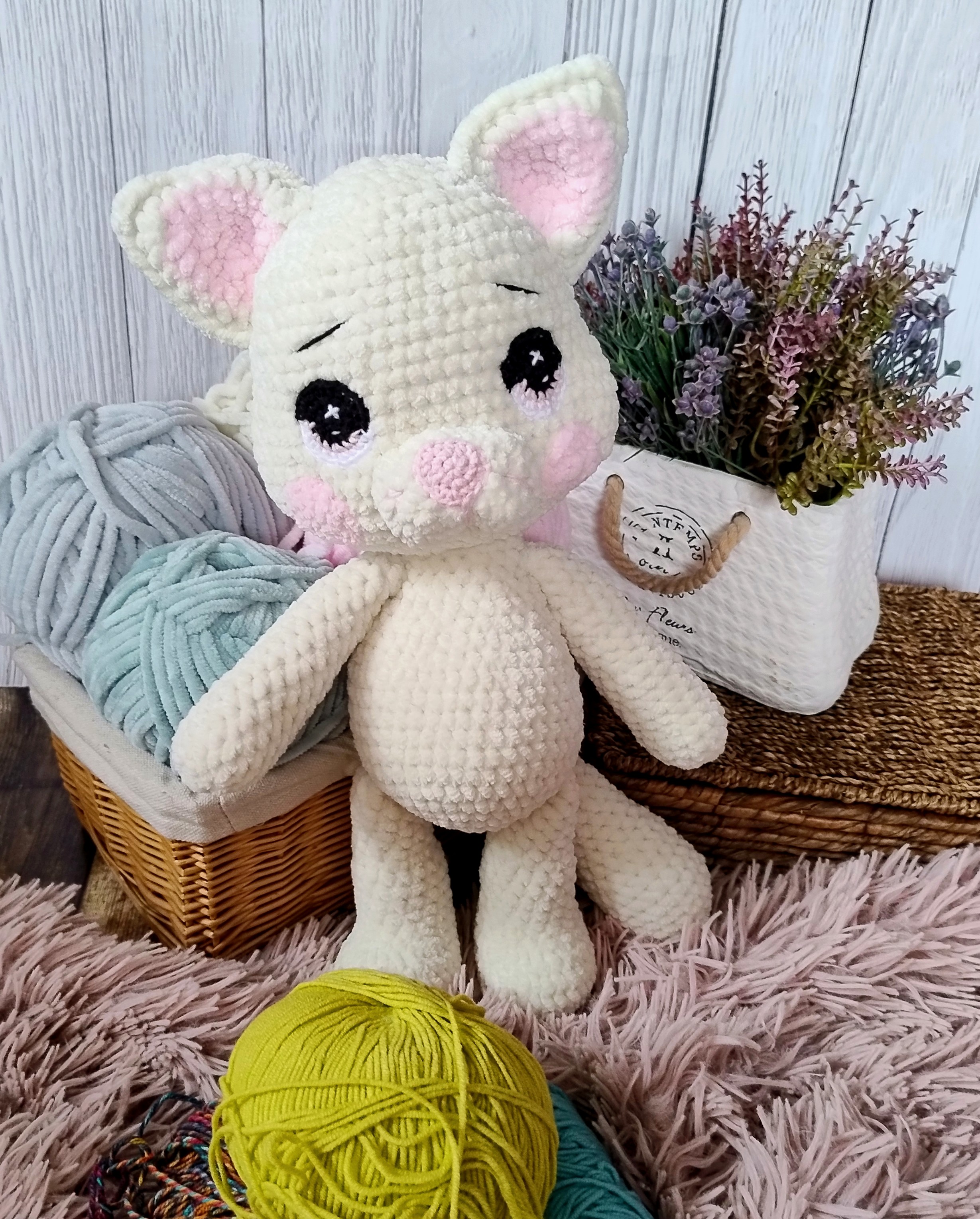 KOTEK – wysokość ok. 37cm z uszami, włóczka pluszowa. Cena 169zł