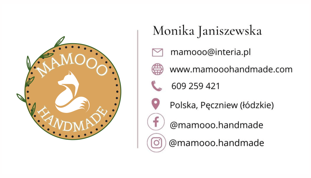 Producentem maskotek – w myśl nowego rozporządzenia z dnia 13 grudnia 2024 roku w sprawie Ogólnego Bezpieczeństwa Produktów (GPSR) – jest Mamooo Handmade Monika Janiszewska, 99-235 Popów Kolonia, ul. Sadowa 32, tel. 609259421, e-mail mamooo@interia.pl